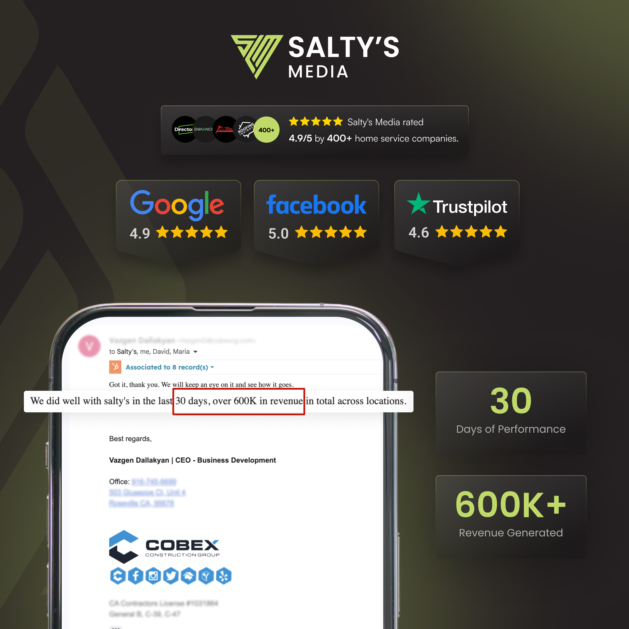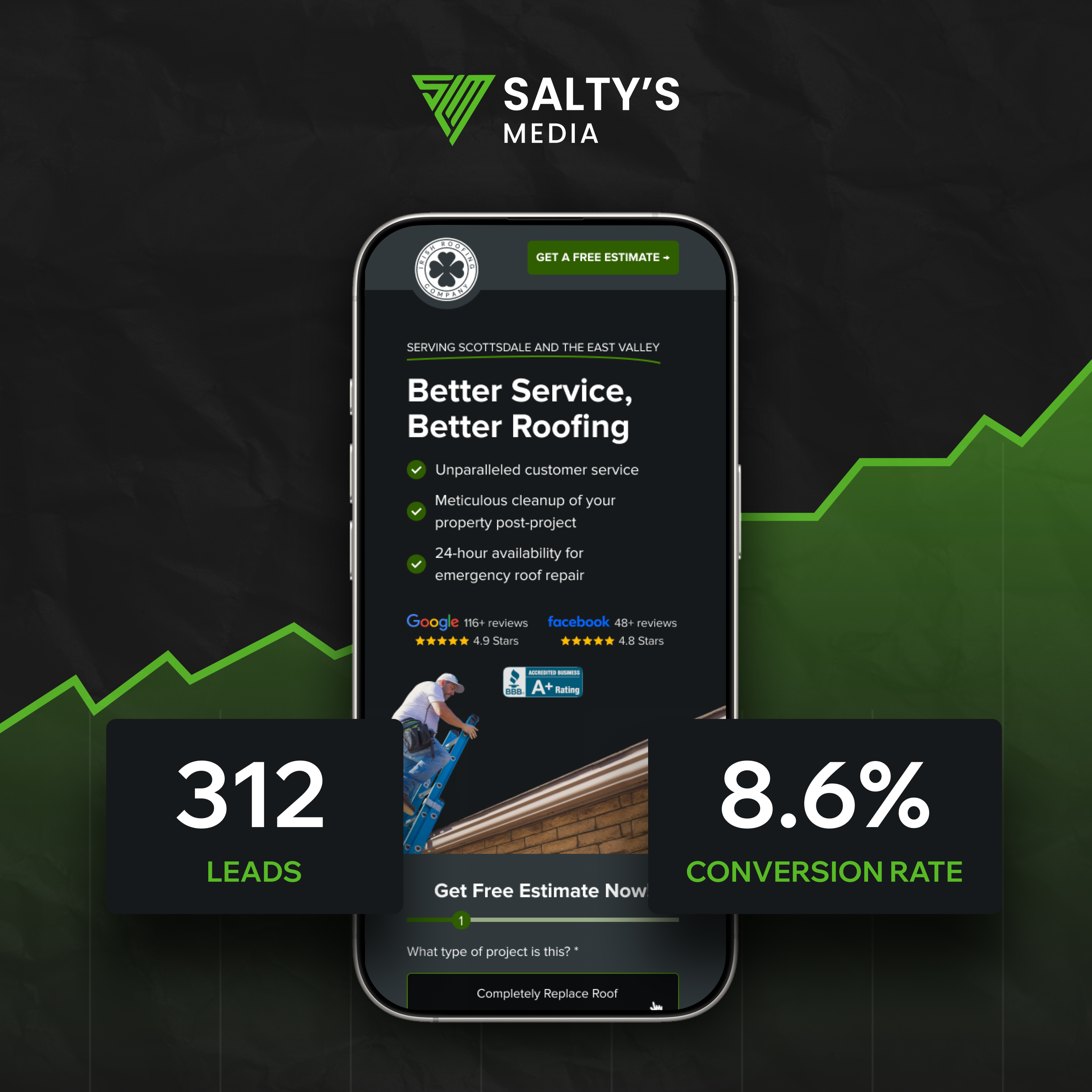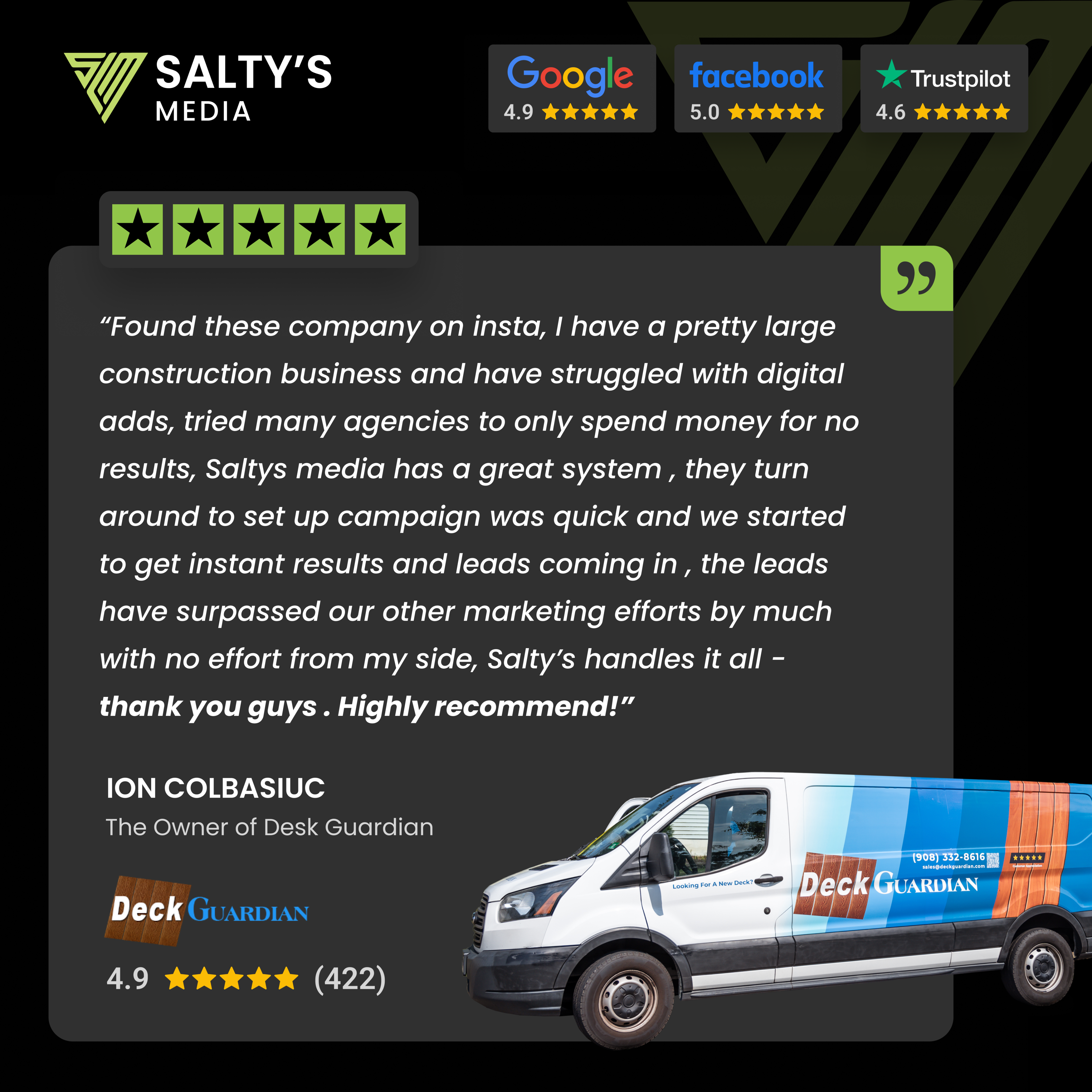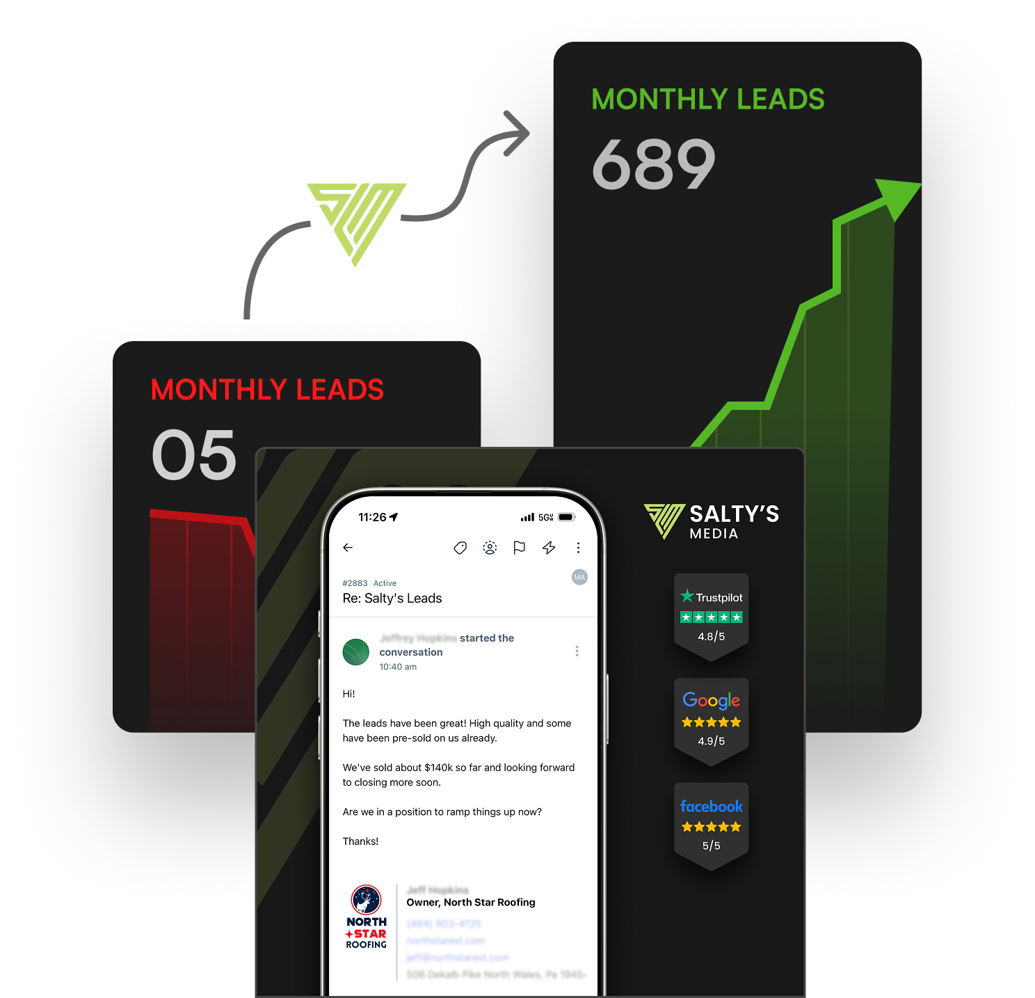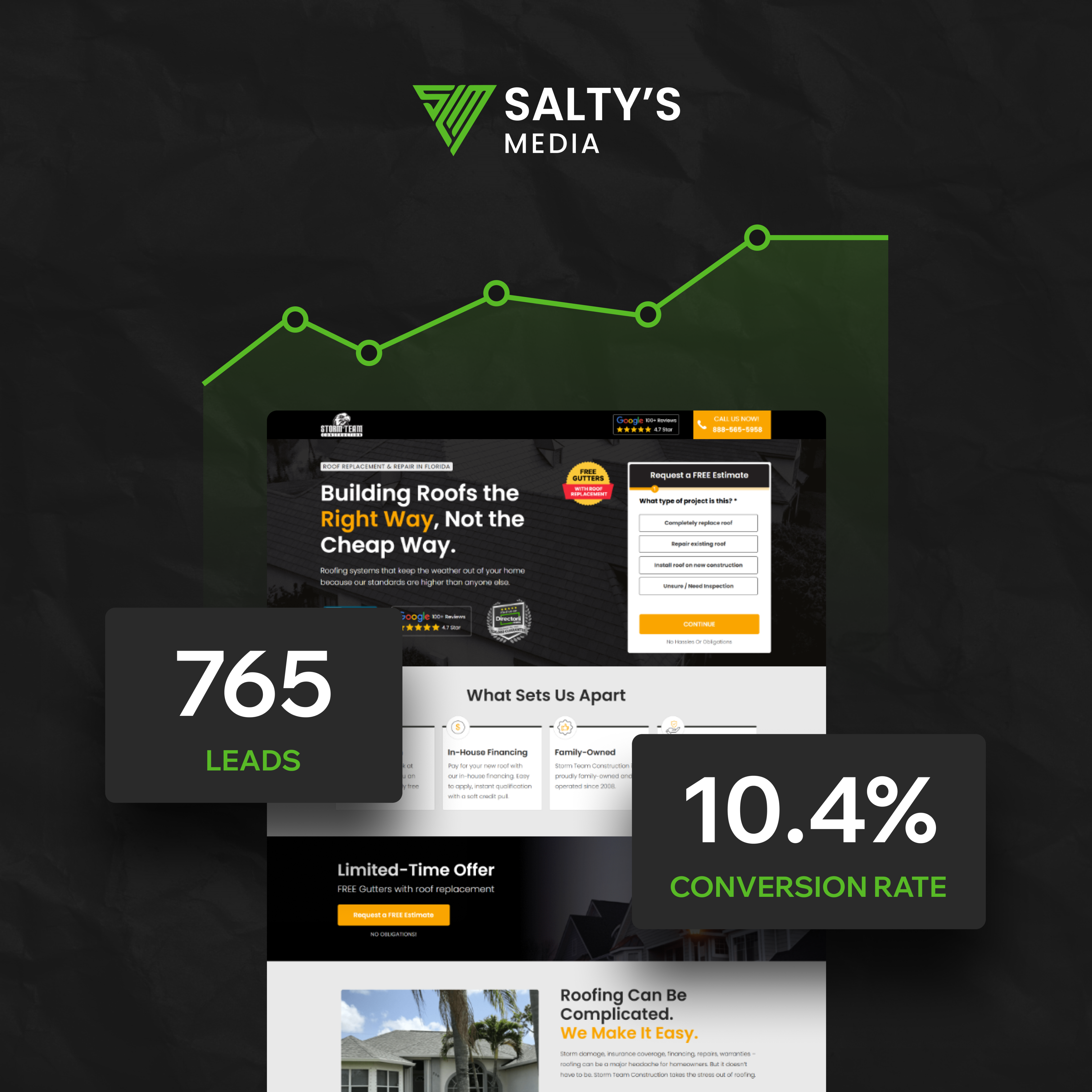 "Salty's Media has generated over 500,000 leads for my company." — Mike Feazel, Founder & CEO at Roof Maxx